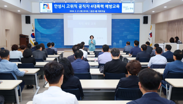 안성시 관계자는 “더욱 섬세하고 체계적인 폭력 예방 교육을 통해 서로 존중·배려하는 직장 문화가 안착하도록 지속 노력할 것”이라고 말했다.