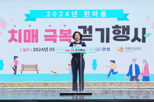 김보라 안성시장은 “이번 치매극복 걷기행사를 통해 치매에 대한 두려움과 편견을 없애는 치매 친화적 도시 안성에 한 발짝 더 가까워지는 계기가 되길 바란다”며 “앞으로도 치매환자와 가족들이 외롭지 않도록 안심하고 지낼 수 있도록 치매안심도시 안성 만들기를 위해 최선을 다하겠다”고 말했다.