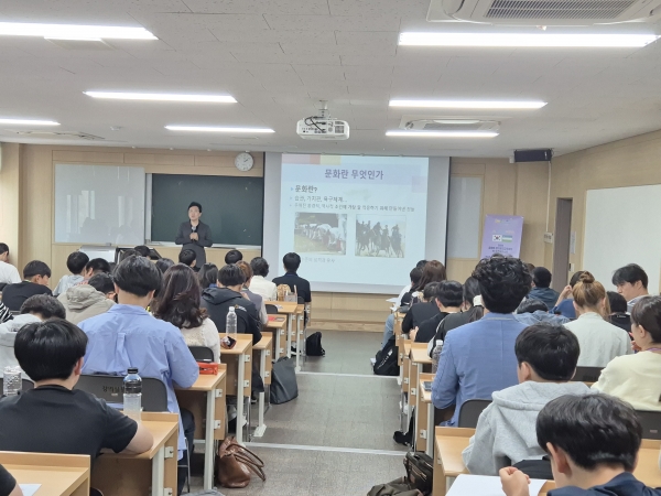 한민 교수는 주어진 환경, 역사, 습관, 가치관, 욕구 등 다양한 요소를 바탕으로 만들어진 각 나라의 문화를 살펴보고 우리가 인지하지 못하고 있는 편견을 돌아보며 서로의 문화를 바르게 보는 시선을 생각해 보는 시간을 제공했다.