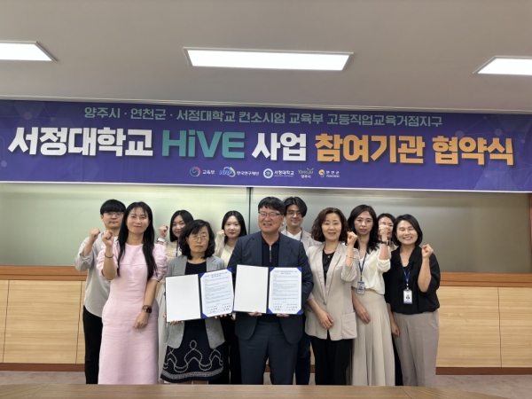 이날 협약식에는 염일열 서정대학교 HIVE 센터장, 조명희 양주시 일자리경제과장, 정명희 양주 베이비부머 행복캠퍼스센터장 등이 참여했다.