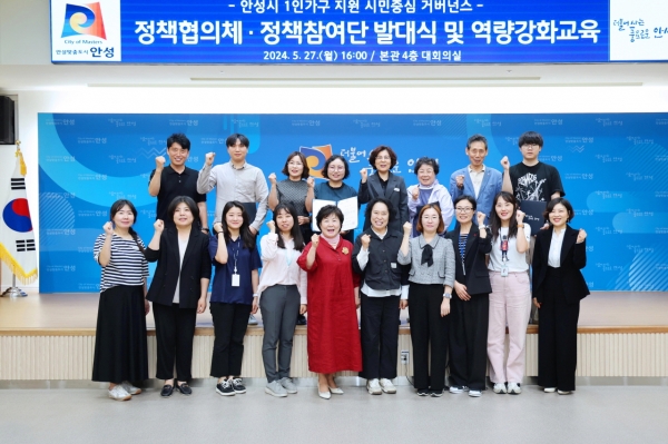 [금요저널] 안성시는 1인가구 정책 수요에 대응하고 다양한 공감정책 발굴을 위해 지난 5월 27일 시민중심 거버넌스 정책협의체·정책참여단 발대식 및 역량강화 교육을 실시했다.