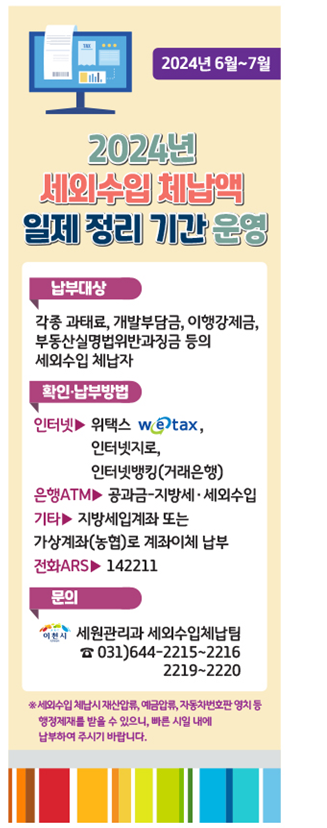 이천시, 세외수입 체납액 일제 정리 기간 운영