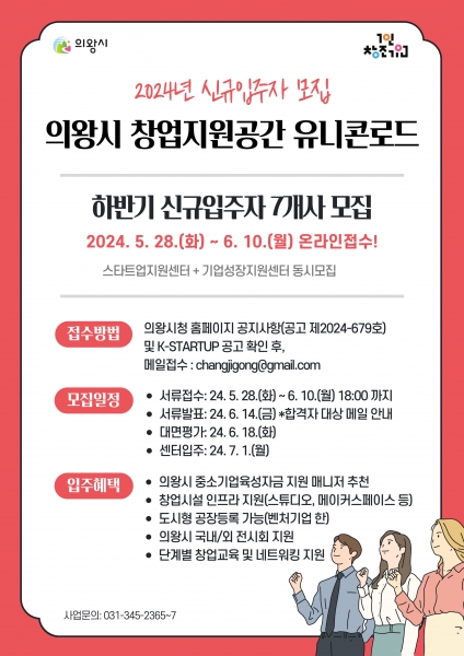 의왕시 창업지원공간 유니콘로드, 2024년 하반기 신규 입주자 모집