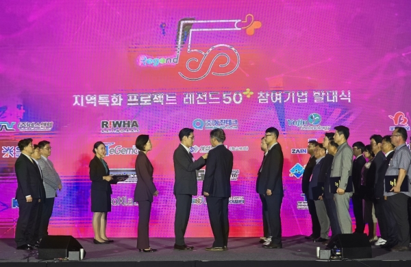 장호종 대전시 경제과학부시장은 30일 울산전시컨벤션센터에서 열린 레전드 50+ 발대식에 참석해 참여 대전기업에 직접 인증 배지를 수여했다.