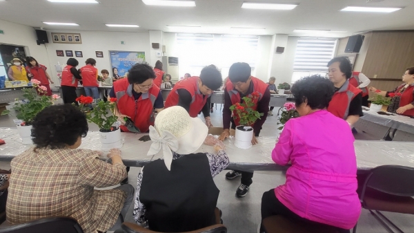 김OO 어르신은 “집에서 혼자 외롭고 웃을 일이 없었는데, 이렇게 나와 꽃 화분도 만들고 실컷 웃었더니 스트레스가 확 풀린다”며 활짝 웃었다.