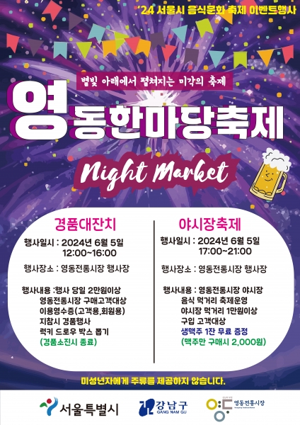 강남구, 영동전통시장 야시장에서 이색안주와 맥주 즐겨요~
