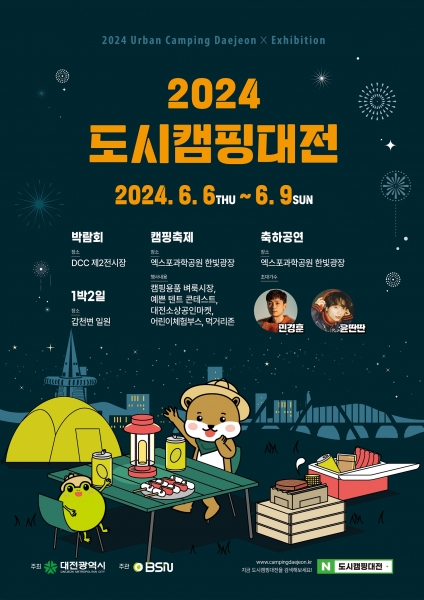 [금요저널] 대전시는 도심 속 캠핑과 축제를 함께 즐길 수 있는 ‘2024 도시캠핑대전’을 6월 6일부터 9일까지 4일간, 대전컨벤션센터 제2전시장과 엑스포과학공원, 갑천변 일원에서 개최한다.
