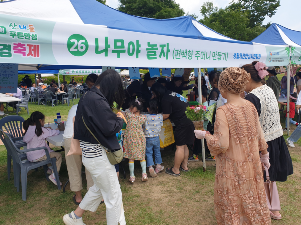 이번 행사는 안성시에서 추진하는 제 17회 산내들 푸른안성 환경 축제에서 생활개선안성시연합회가 환경을 위한 체험물품인 편백향주머니 만들기 140개를 기부하고 안성맞춤랜드를 찾은 시민들에게 무료로 지구를 위한 탄소중립 실천 다짐 문구 쓰기와 편백가구만들기의 부산물인 편백톱밥을 활용한 편백향주머니 만들기 체험을 진행했다.