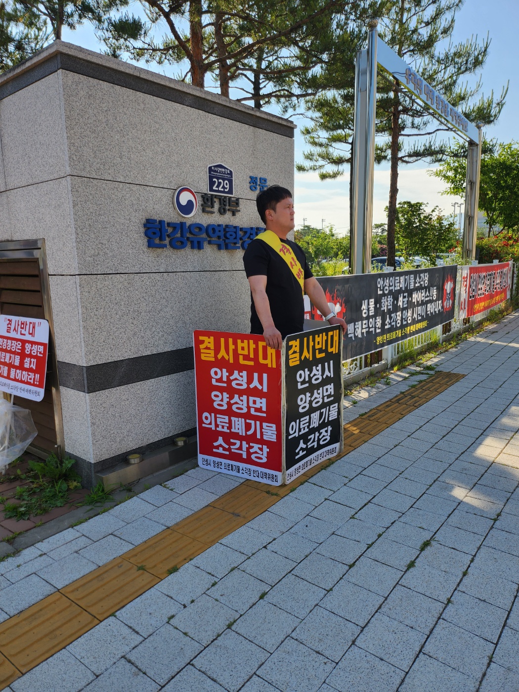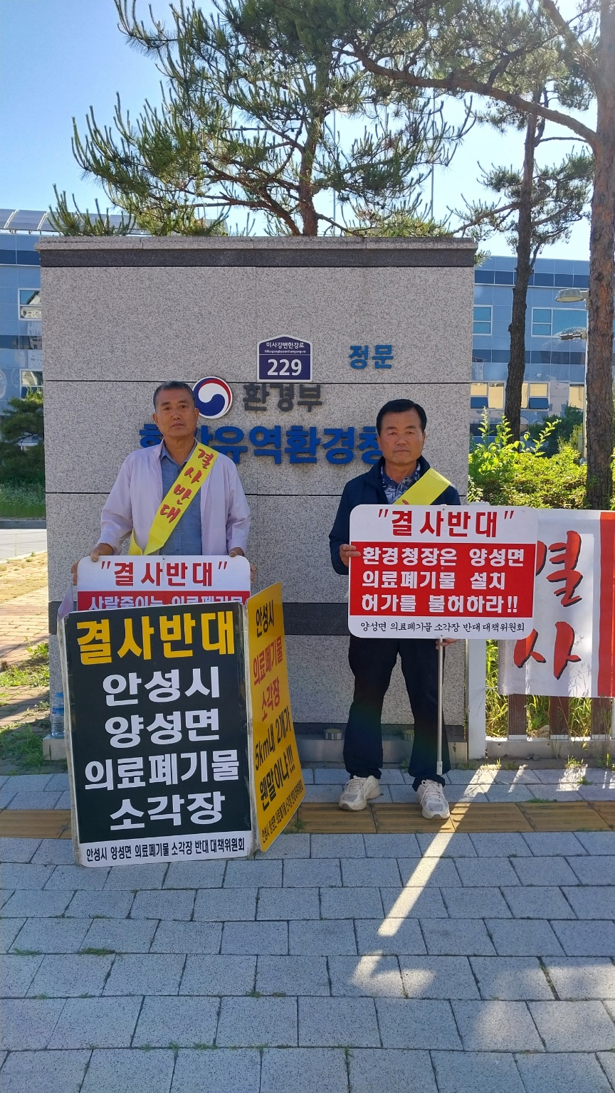 이에 안성시 양성면 장서리 1리, 2리 주민과 이현리 주민들(의료폐기물 소각장 반대 투쟁 위원회)은 환경오염, 발암물질, 등 소각장에 대해 부적합성을 내세우며 한강유역환경청 입구에서 1인, 2인 시위에 시작하였으며 첫날에는 장서리 이장 손덕환 이장과 반대 대책위원장 이천우 사무국장 진범화 임원이 한강유역환경청을 방문하여 청장의 면담을 요청하였고 관활 경찰서에 반대 시위 집회 허가를 접수하였다.