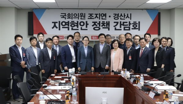 국회의원회관 제2간담회실에서 열린 정책간담회에는 조지연 국회의원과 조현일 경산시장을 비롯해 경산시청 공무원 및 보좌진 20여명이 참석했다.