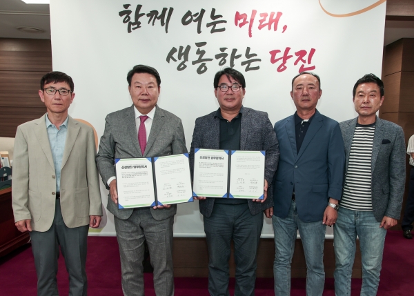 [금요저널] 당진시가 지난 5월 31일 당진시청에서 ㈜조이, 당진축협, 농협해나루조합공동사업법인과 함께 당진 농산물 공급 확대를 위한 상생발전 업무협약을 체결했다.