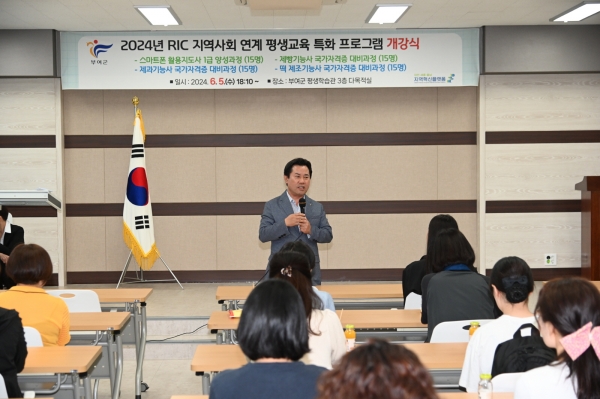 [금요저널] 부여군은 지난 5일 부여군 평생학습관에서 박정현 군수를 비롯한 수강생, 강사 등 80여명이 참석한 가운데 “2024년 지역사회 연계 평생교육 특화 프로그램” 개강식을 가졌다.