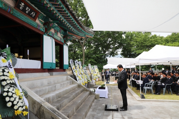 [금요저널] 금산군은 지난 6일 금산읍 소재 충령사에서 순국선열과 호국영령의 위훈을 기리는 제69회 현충일 추념식을 거행했다.