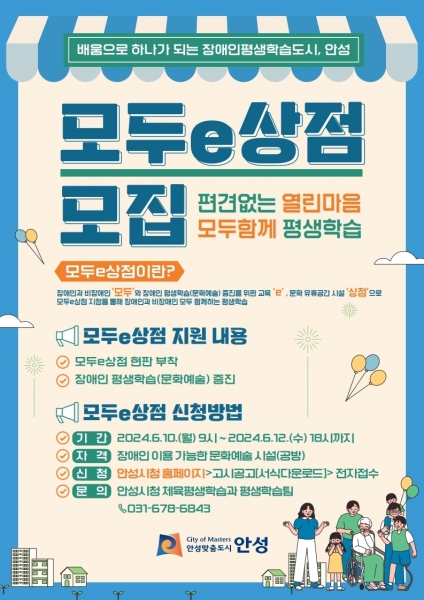 안성시 관계자는 “이번 ‘모두e상점’ 사업을 통해 장애인과 비장애인이 함께 어울리며 학습할 수 있는 공간을 확대함으로써, 지역사회의 교육 격차를 줄이고 상호 존중과 이해를 높일 수 있을 것으로 기대한다”고 밝혔다.