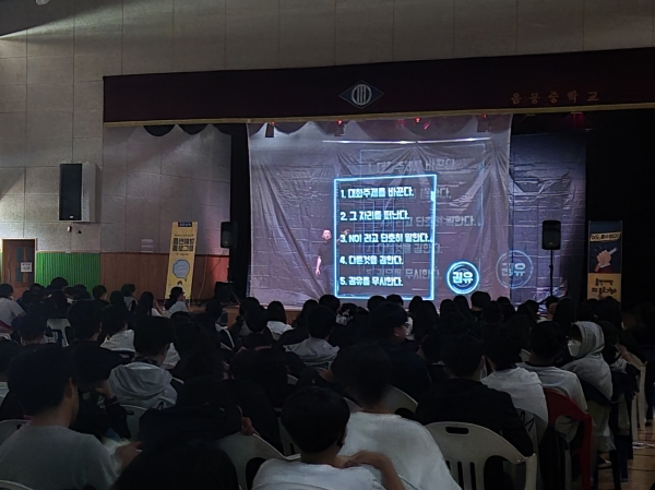 [금요저널] 아산시 보건소가 지난 7일 음봉중학교에서 ‘청소년 흡연예방 홀로그램 공연’을 개최했다.