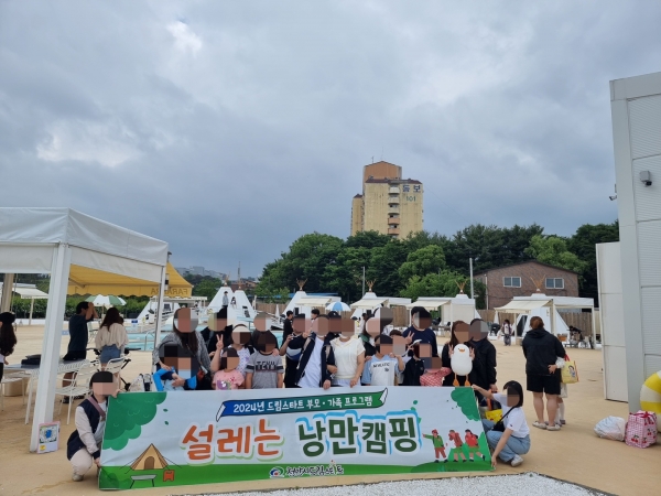 [금요저널] 천안시 드림스타트는 지난 8일 지역의 한 글램핑장에서 한부모가정 아동과 보호자 50명을 대상으로 가족 체험활동인 ‘설레는 낭만 캠핑’을 진행했다.
