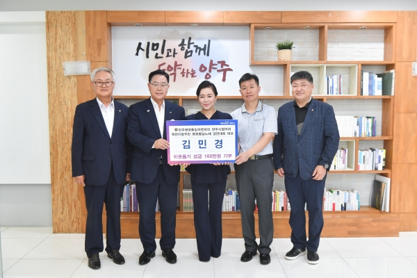 이날 성금 전달식 직후, 양주시의 위상을 높이고 이웃사랑을 실천한 김민경 씨에게 시정발전 유공 표창 수여식을 진행했다.