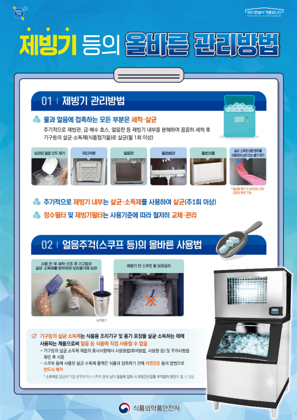 또한 수거검사와 더불어 제빙기 등의 올바른 관리요령을 안내하고 철저한 위생관리를 당부할 예정이다.