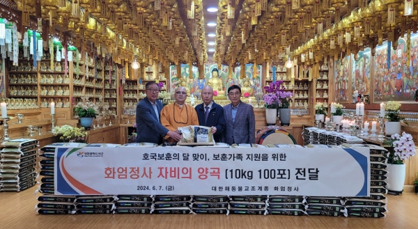 [금요저널] 인천 서구는 7일 사단법인 대한해동불교조계종 화엄정사가 6월 호국보훈의 달을 맞아 ‘자비의 양곡’ 10kg 100포를 전달했다고 밝혔다.