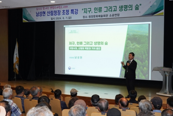 [금요저널] 청양군은 지난 7일 청양군 문예회관 소공연장에서 남성현 산림청장을 초청해 ‘지구, 인류 그리고 생명의 숲’이라는 주제로 특강을 실시했다고 전했다.