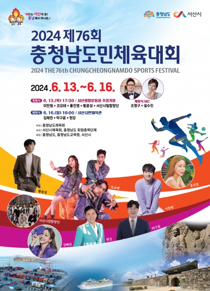 [금요저널] 충남 서산시에서 6월 13일부터 16일까지 4일간 개최되는 ‘2024 제76회 충청남도민체육대회’가 이틀 앞으로 다가온 가운데, 충남도민이 화합하는 장이 될 예정이다.