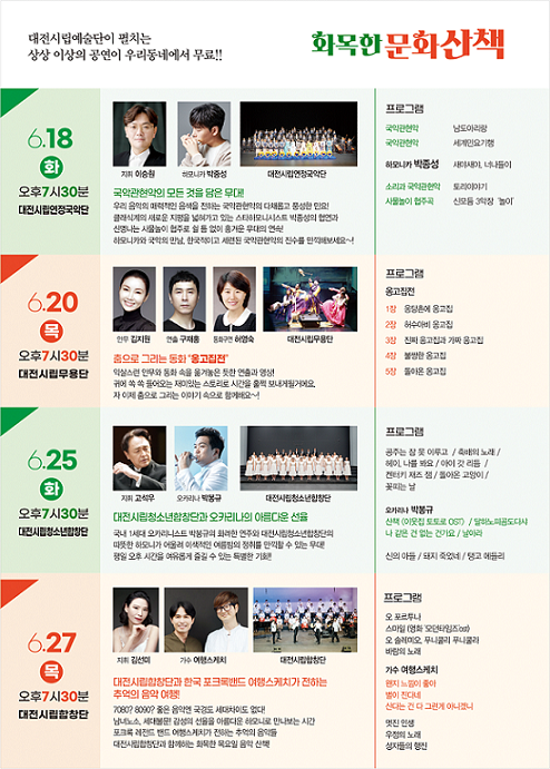 [금요저널] 대전시립예술단은 18일부터 시민을 위한‘화목한 문화 산책’공연을 연다.