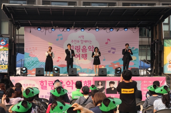 ‘힐링 음악여행’은 일봉동 주민자치센터 프로그램인 한국무용, 포크기타, 댄스장구반 수강생들의 축하공연을 시작으로 뮤지컬 배우와 천안시립합창단의 공연으로 꾸며졌다.
