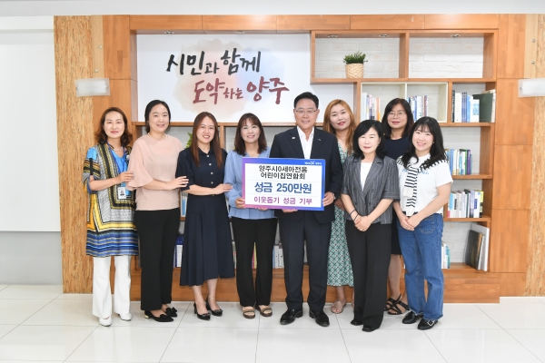이번 전달식에는 강수현 양주시장과 0세아전용 어린이집 원장 7명이 참석했으며 성금은 관내 취약계층에 전달될 예정이다.