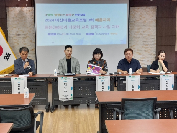아산교육지원청 박서우 교육장은 “이 시간은 아산시와 아산교육지원청의 돌봄과 다문화 교육 정책과 사업을 공유하는 자리다” “우리 지역의 난제인 돌봄과 다문화 교육에 대해 종합적으로 접근하는 계기가 될 것으로 기대한다”며 돌봄과 다문화 교육에 애쓰는 분들의 노고에 감사의 인사를 전했다.