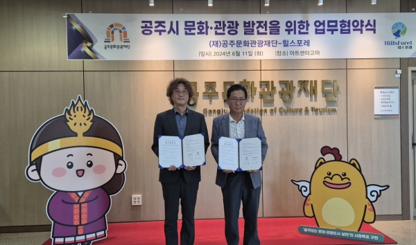 [금요저널] 공주문화관광재단과 힐스포레는 공주시의 문화·관광 발전을 위해 11일 아트센터 고마에서 업무협약을 체결했다고 밝혔다.