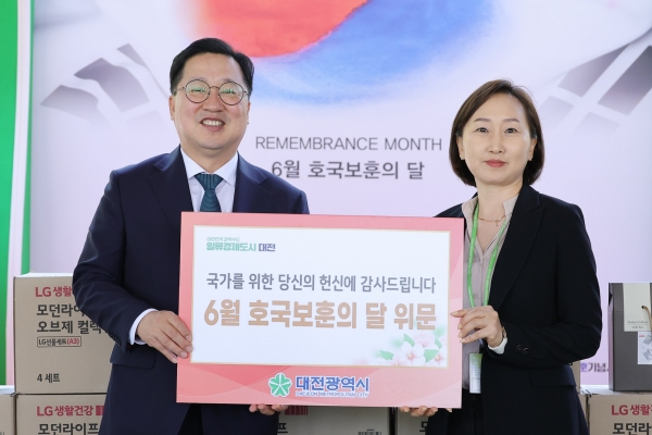 [금요저널] 이장우 대전시장은 6월 호국보훈의 달을 맞아 12일 국군대전병원과 대전보훈요양원을 방문해 부상 장병 및 국가유공자들에게 위문품을 전달하고 감사와 위로의 마음을 전했다.