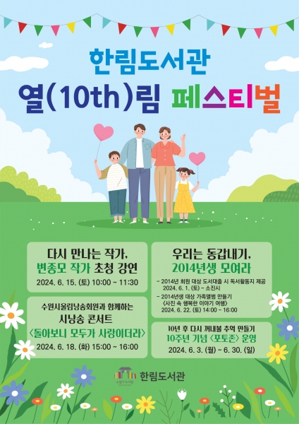 [금요저널] 수원시 한림도서관이 개관 10주년을 맞아 6월 한 달 동안 시민과 함께하는 열 페스티벌을 연다.