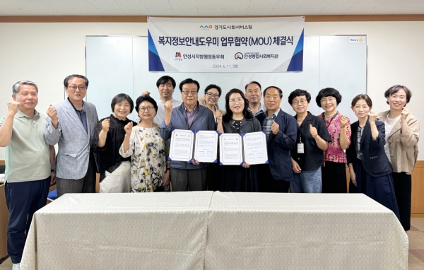 이번 업무협약은 안성시지방행정동우회가 경기도사회서비스원에서 공모한 노인일자리 시범사업인 ‘복지정보안내도우미’에 선정되어 양 기관이 협력관계를 바탕으로 체계적이고 통합적인 안전망을 구축해 복지 정보 소외계층을 위한 찾아가는 복지 상담지원 및 복지사각지대 발굴, 서비스 연계를 통해 체감도 높은 복지정책 선도모델 개발 지원을 위해 상호 교류 및 협력 사업을 추진하고자 체결됐다.