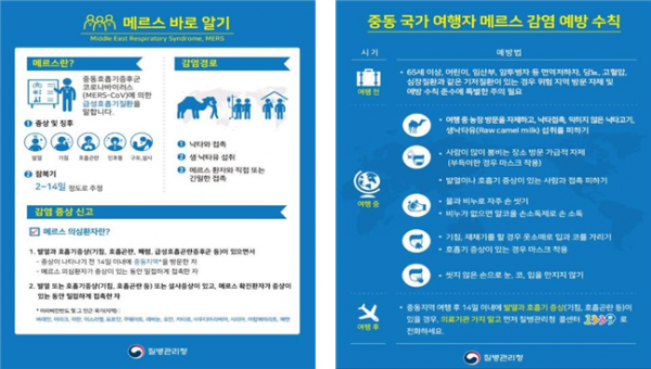 특히 이슬람 성지순례 기간내 중동지역 방문자들은 귀국 후 2주 이내 메르스 감염 의심 증상이 발생하면, 즉각적으로 질병관리청 콜센터를 통해 상담을 받아야 한다.