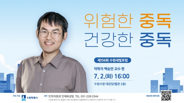 [금요저널] 약학자 백승만 교수가 7월 2일 오후 4시 시청 대강당에서 열리는 제156회 수원새빛포럼 강연자로 나선다.