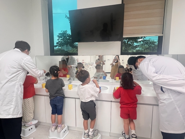 특히 양치질이 끝나면 구강검진 후 충치 예방에 좋은 불소도포를 시행하고 가정용 불소양치용액과 어린이 양치컵 세트도 함께 제공하고 있다.
