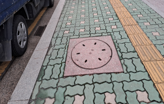 콘크리트 맨홀뚜껑은 보라색 계열의 색상을 띄며 보행환경을 개선하기 위해 2000년도 초반에 집중적으로 설치됐으나, 내부에 철근배근 등의 안전장치가 없어 외부의 충격이나, 노후에 따른 균열에 취약하다.
