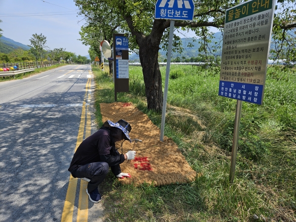 천안시 북면, 버스정류장에 야자매트를 설치한 이유는?