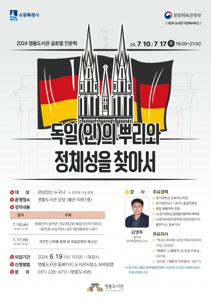 [금요저널] 수원 영통도서관이 2024 글로벌 인문학 강의인 ‘독일의 뿌리와 정체성을 찾아서’의 수강생을 모집한다.