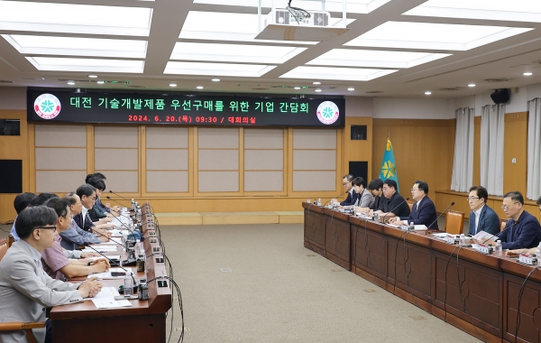 [금요저널] 대전시는 20일 시청 대회의실에서 공공분야에 활용 가능한 관내 혁신기술기업의 기술개발제품 판로확대 지원을 위한 공공·우선구매 간담회를 개최했다.