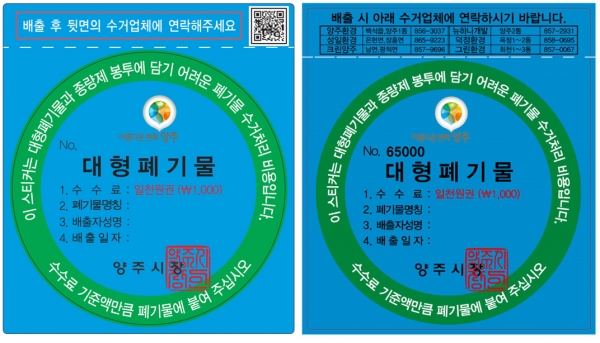 [금요저널] 양주시가 폐가구 등 대형폐기물 배출 시 필수적으로 부착해야 하는 폐기물 스티커에 기능성을 강화하며 시민들의 큰 호응을 얻고 있다.