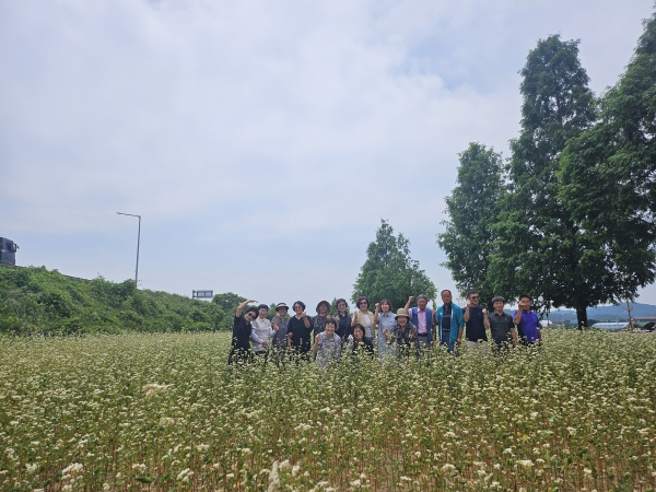 [금요저널] 고삼면 주민자치위원회는 지난 20일 2024년 주민참여예산에 공모해 주민자치 특색 사업의 일환으로 한천변 일원에 4,950㎡ 로 조성된 메밀밭을 방문했다.