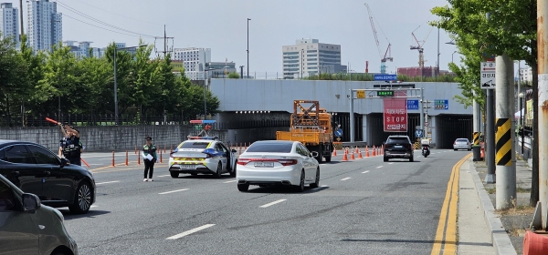 21일 만년2 지하차도에서 자치구, 경찰, 민간 조력자와 합동으로 여름철 집중호우 대비 지하차도 통제훈련을 실시했다.