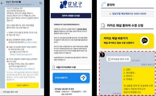 구는 여기서 한 발 더 나가 ‘강남구청 재산세과’ 카카오톡 채널을 개설해 구민들이 더 간편하게 개인정보 업데이트를 할 수 있도록 했다.