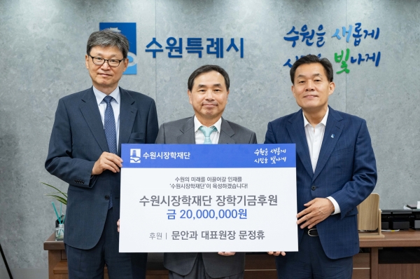 박춘근 수원시장학재단 이사장은 “선한 영향력을 펼쳐주신 문정휴 원장님, 안진완 대표님께 감사드린다”며 “앞으로도 학생들의 꿈을 응원하며 인재를 지속해서 키워내겠다”고 말했다.