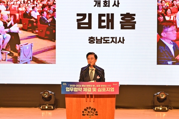 25일 도청 문예회관에서 김태흠 지사를 비롯해 도의회, 15개 시장·군수, 5개 공공기관장, 12개 유관단체장 등 800여 명이 참석한 가운데, 충남 방문의 해 성공운영과 충남관광 활성화를 위한 업무협약 및 심포지엄을 개최했다