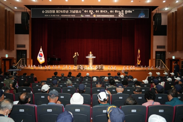 [금요저널] 서천군이 지난 25일 서천문예의전당 대강당에서 보훈단체장, 참전유공자 및 유족, 기관단체장, 주민 등 400여명이 참석한 가운데 ‘6·25전쟁 제74주년 기념행사’를 개최했다.