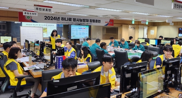 [금요저널] 대전시는 26일 시청 재난안전상황실에서 지진 발생으로 원자력 원자로실 방사능 누출 상황을 가정한 ‘2024년 하나로 방사능방재 합동훈련’을 실시했다.