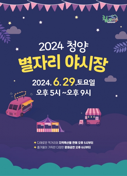 이 열기를 모아, 오는 29일에 진행되는 여름밤의 마지막 청양 별자리야시장에서는 다양한 먹거리를 비롯해 피날레를 장식할 공연 등 흥겨운 프로그램이 준비되어 있다.