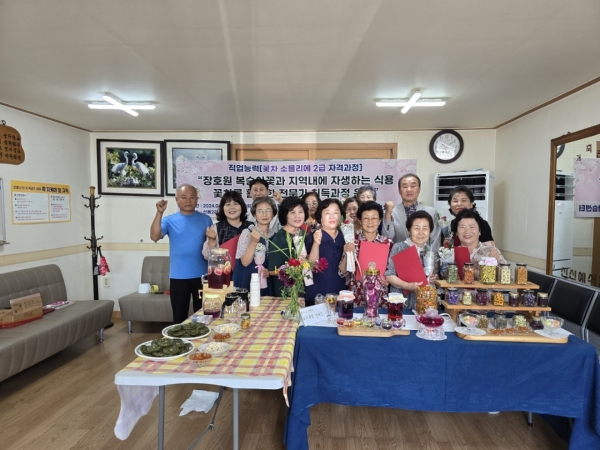 [금요저널] 장호원 주민자치평생학습센터는 지난 6월 26일 오전 10시 선읍2리 마을회관에서 주민 50여명이 참여한 가운데 직업능력 향상프로그램의 일환으로 진행한 ‘꽃차 소믈리에 2급 자격증 과정’의 자격증 수여식을 진행했다.